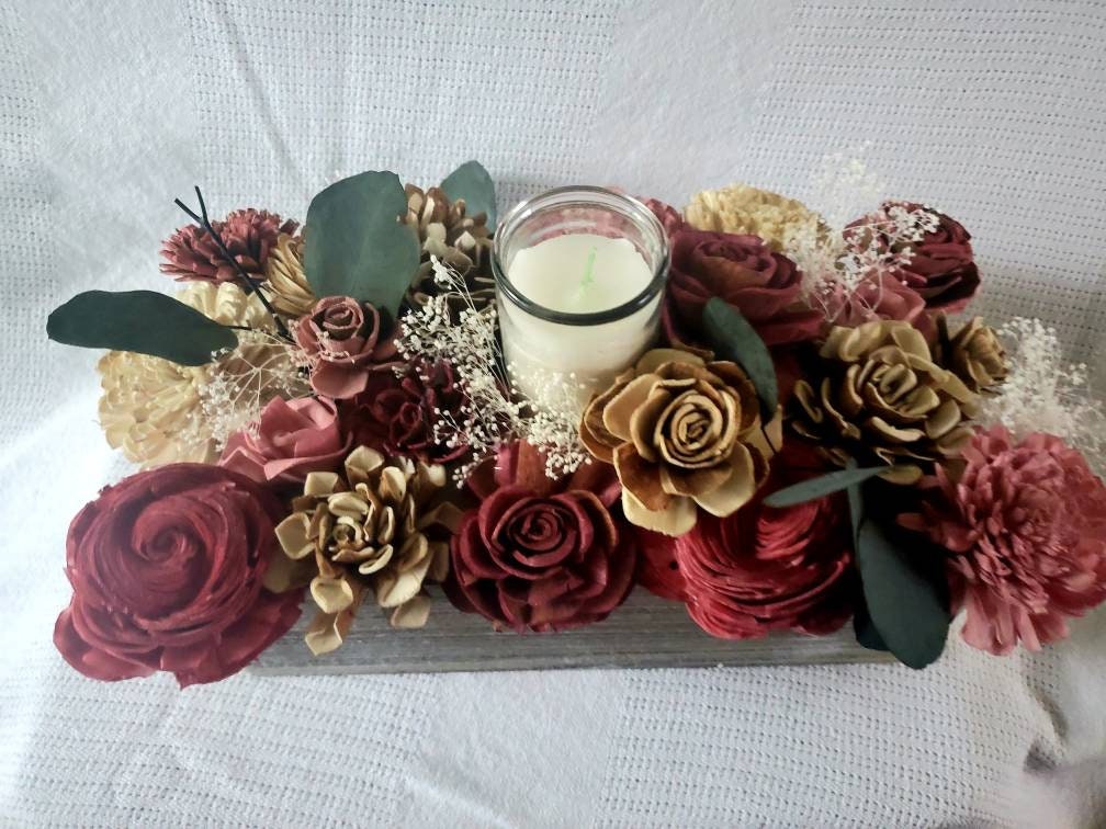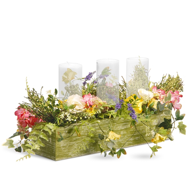 Candle holder christmas wreath tabletop centerpiece holiday ornament decorations wooden box centerpiece. A wood box with pink roses and some wildflowers for a relaxed spring or summer wedding.
